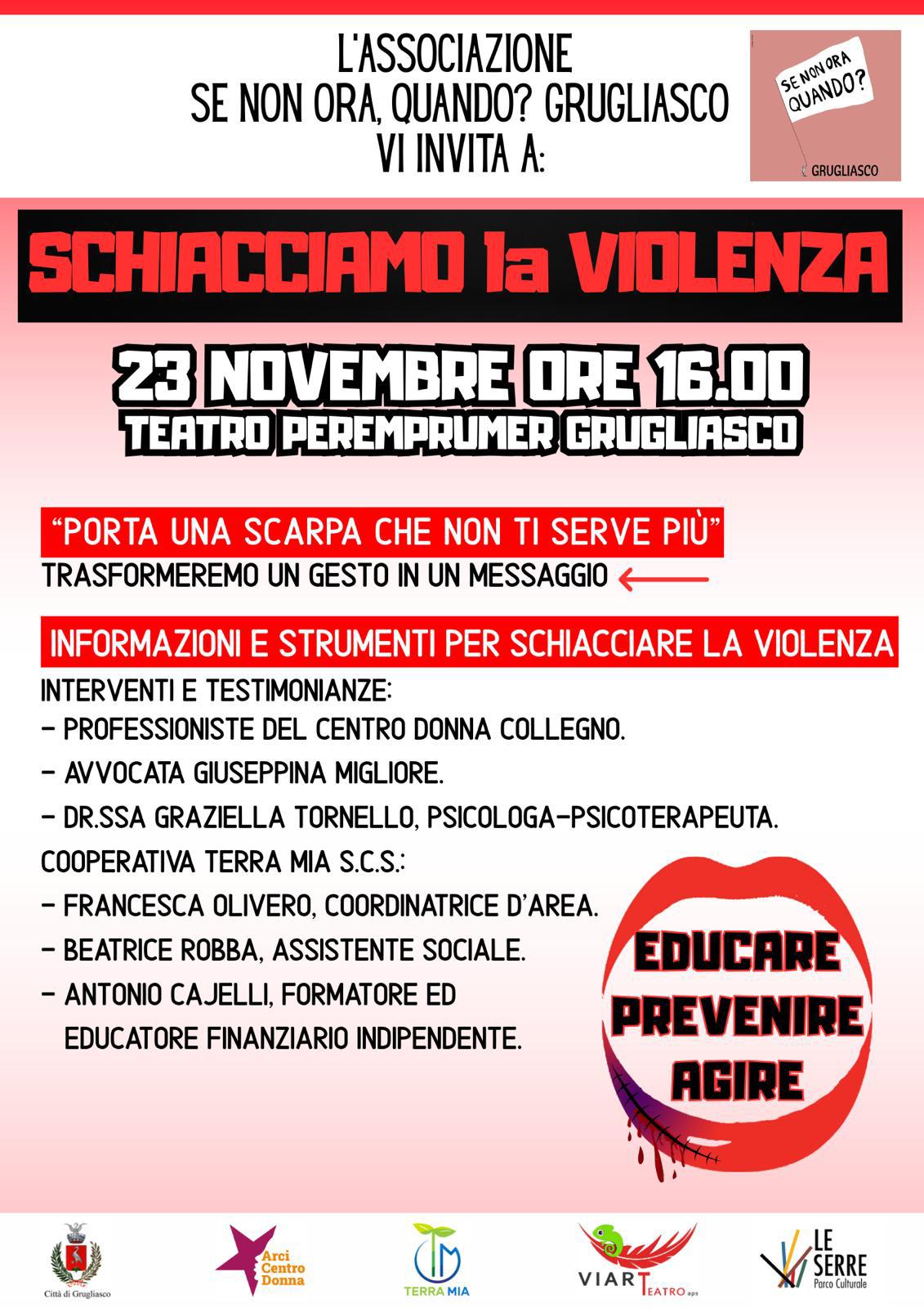 Domenica 23 novembre 2025 si terranno a Grugliasco due appuntamenti dedicati alla sensibilizzazione contro la violenza di genere e alla promozione della cultura del rispetto.