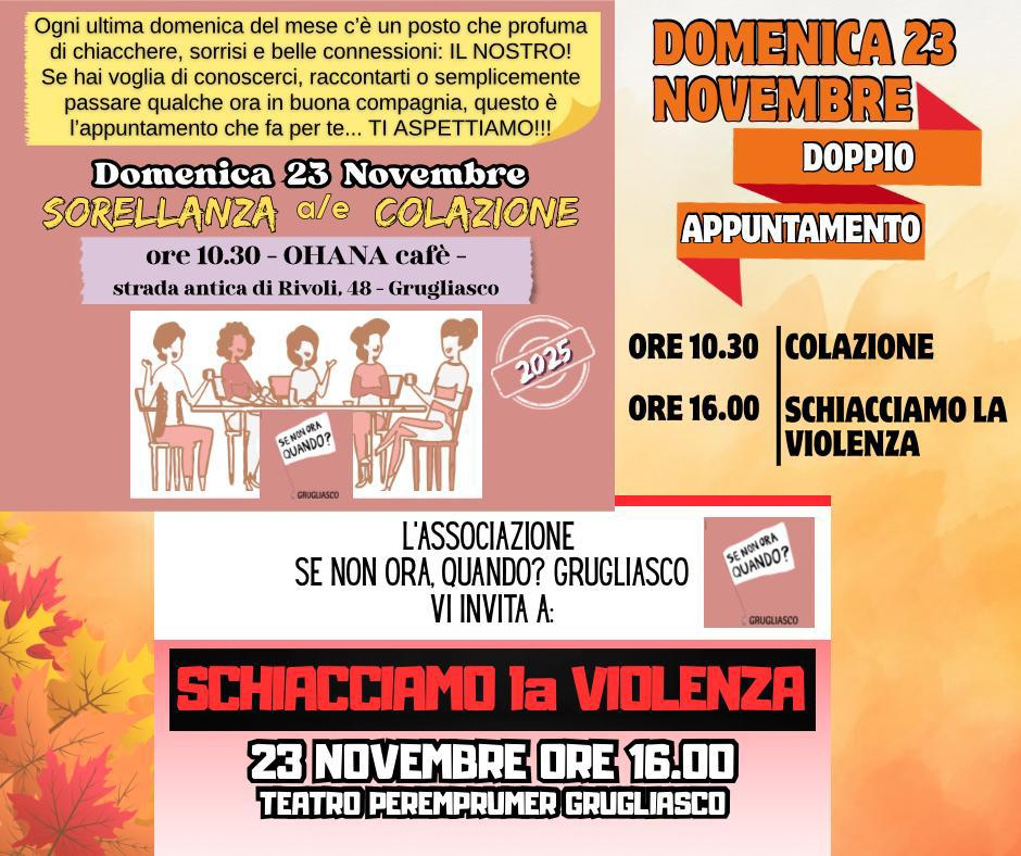 La giornata prenderà il via alle ore 10.30 con la Colazione della sorellanza presso l’OHANA Cafè, in Strada Antica di Rivoli 48. Un momento di incontro e confronto aperto a tutte e tutti, per condividere esperienze e riflessioni sui temi della solidarietà e del sostegno reciproco.