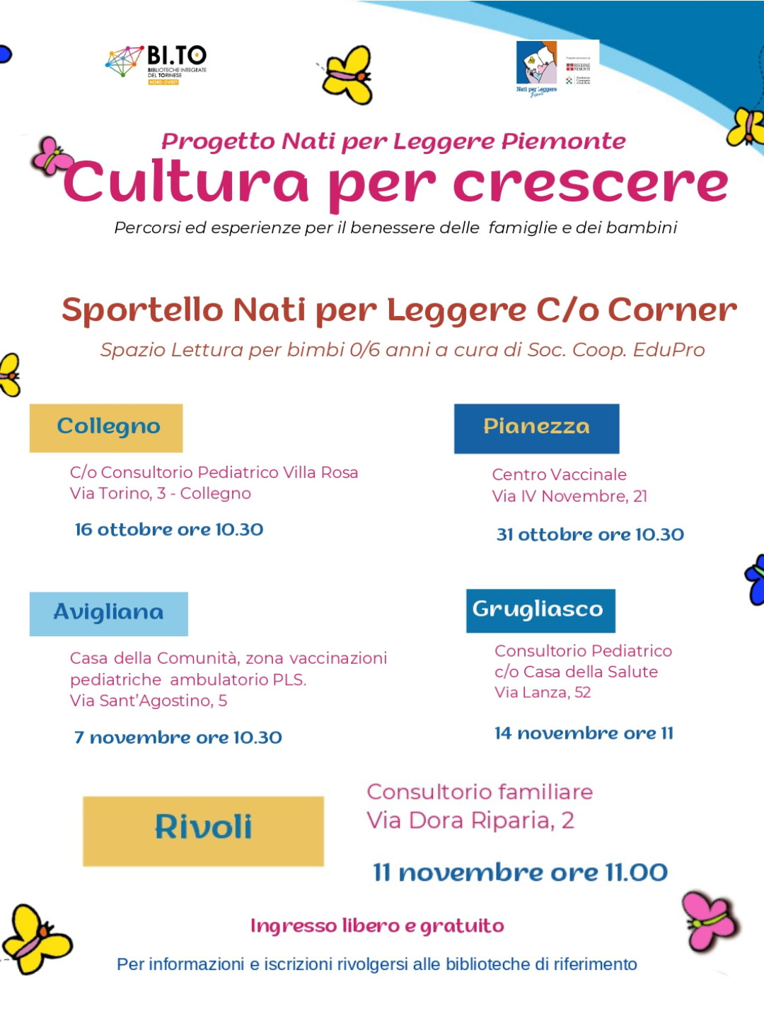 L’attività è inserita nell’ambito del progetto Nati per Leggere – Cultura per Crescere dell’Area Bi.TO Nord-Ovest, con il sostegno della Fondazione Compagnia di San Paolo.