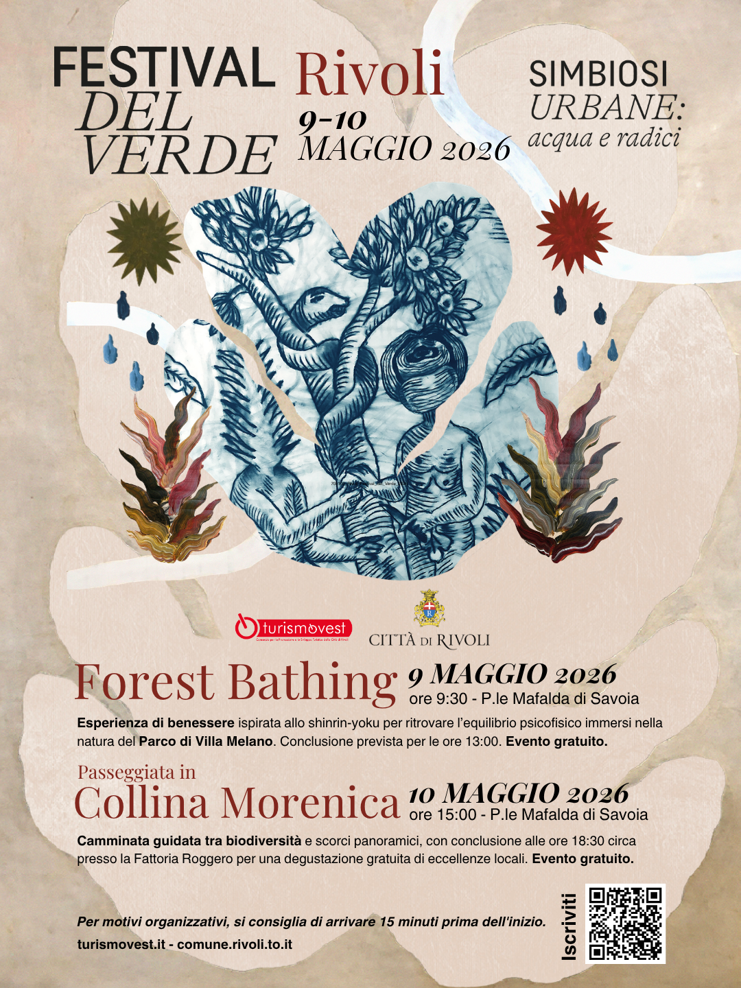 La Città di Rivoli, in collaborazione con il Consorzio TurismOvest, aderisce alla nuova edizione del Festival del Verde, la kermesse metropolitana dedicata alla natura e al paesaggio urbano. Sotto il tema "Simbiosi Urbane: acqua e radici", il Comune propone due giornate dedicate alla sostenibilità e alla salute, volte a favorire un contatto diretto tra i cittadini e il territorio.