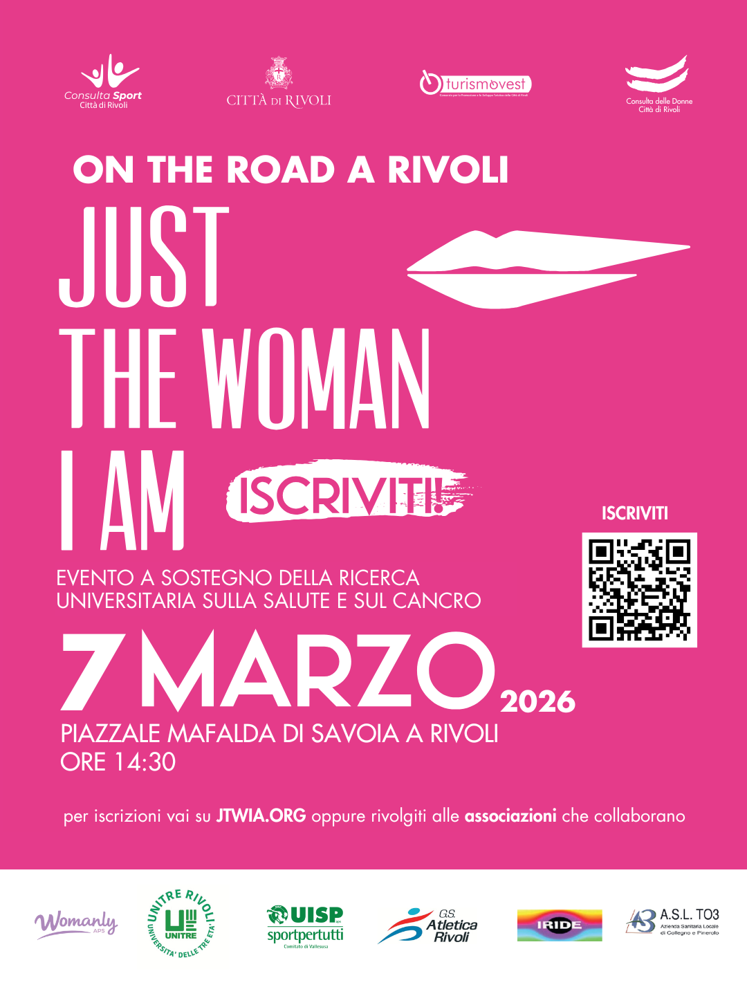 Promosso dalla Città di Rivoli, Consulta delle Donne e Consulta dello Sport, anche Rivoli aderirà al Just The Woman I Am (JTWIA) On The Road, l’evento che dal 2014 sostiene la ricerca universitaria sulla salute e sul cancro, promuovendo prevenzione, corretti stili di vita, inclusione e parità di genere.